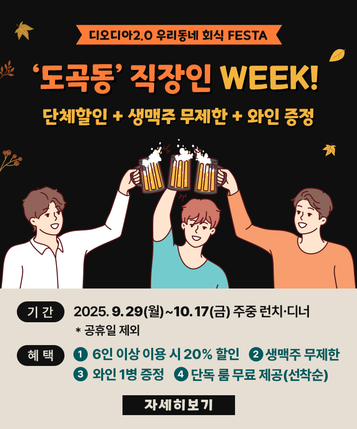 104,000원 *1부. 17:00~19:00 *2부. 19:30~21:30 |