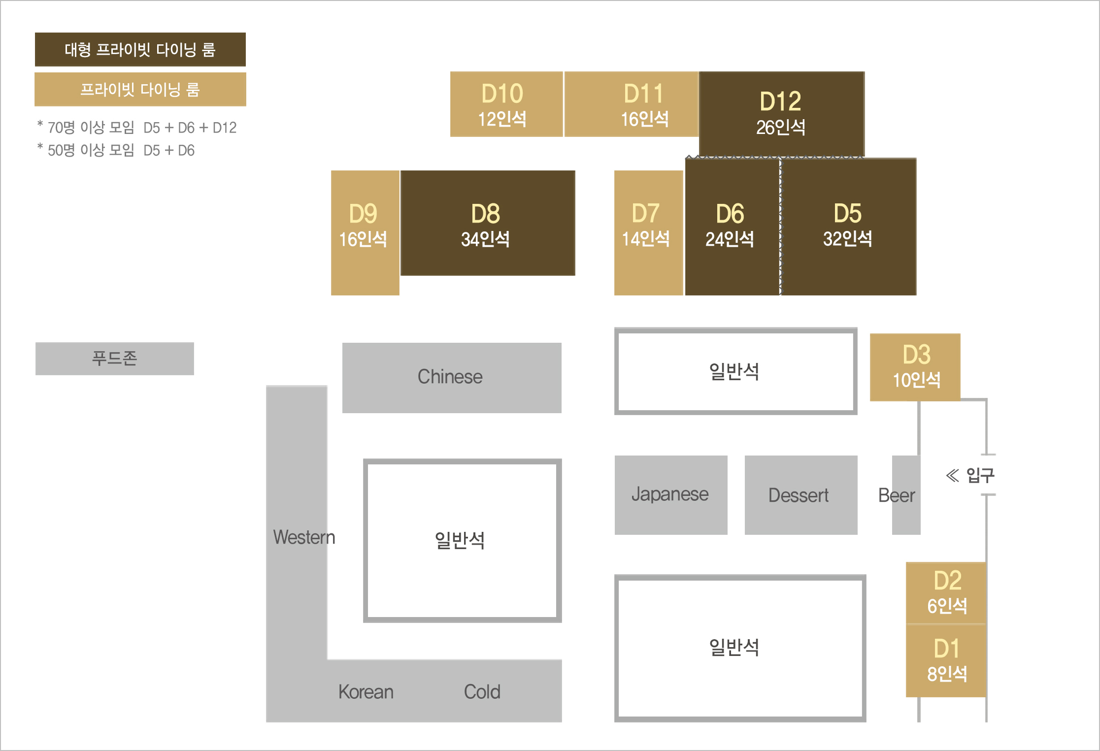 ※ 상차림이 가능한 룸은D5, D5+D6, D8, D9, D12 입니다.